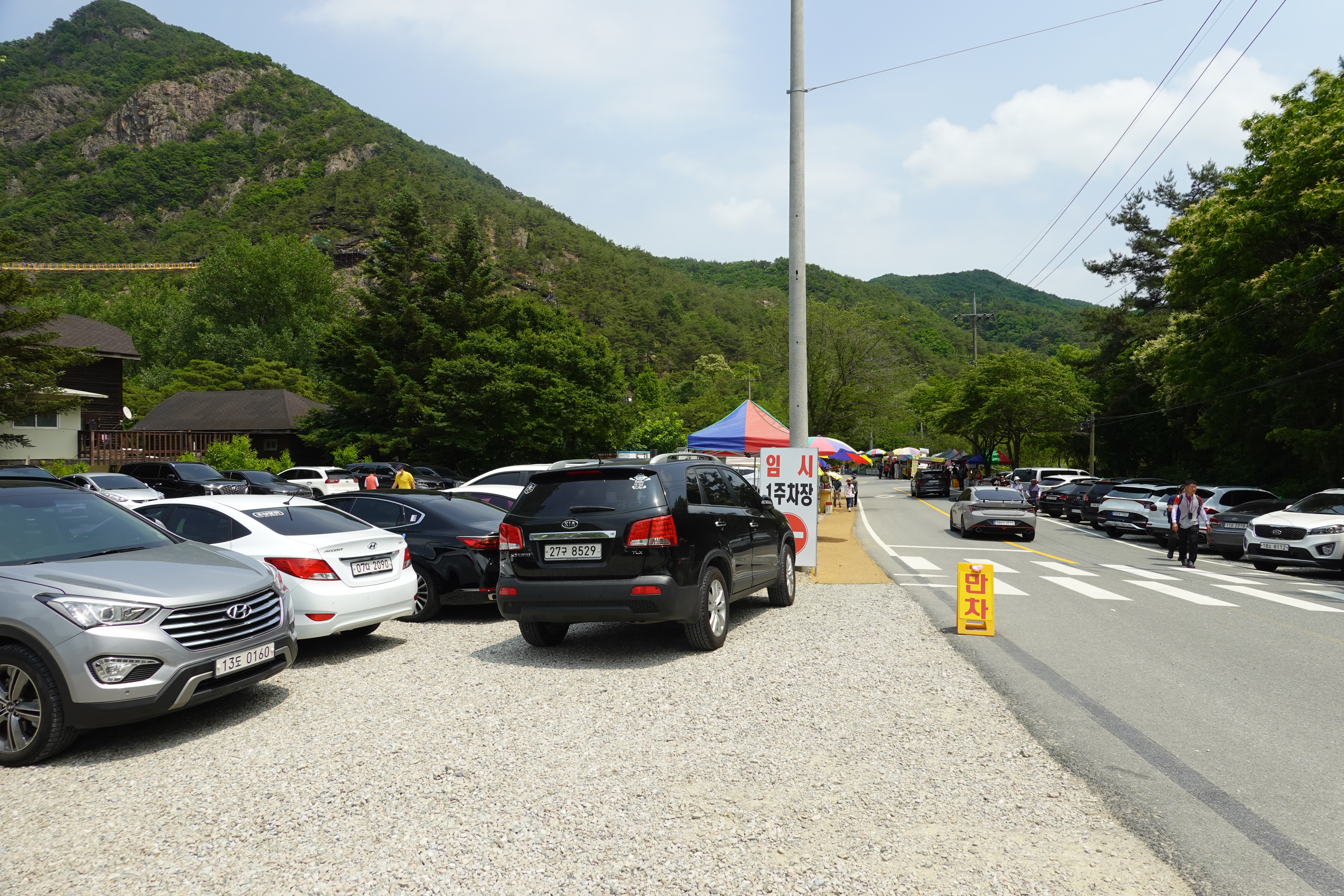 주차장이 비좁고 갓길에도 차량들이 가득